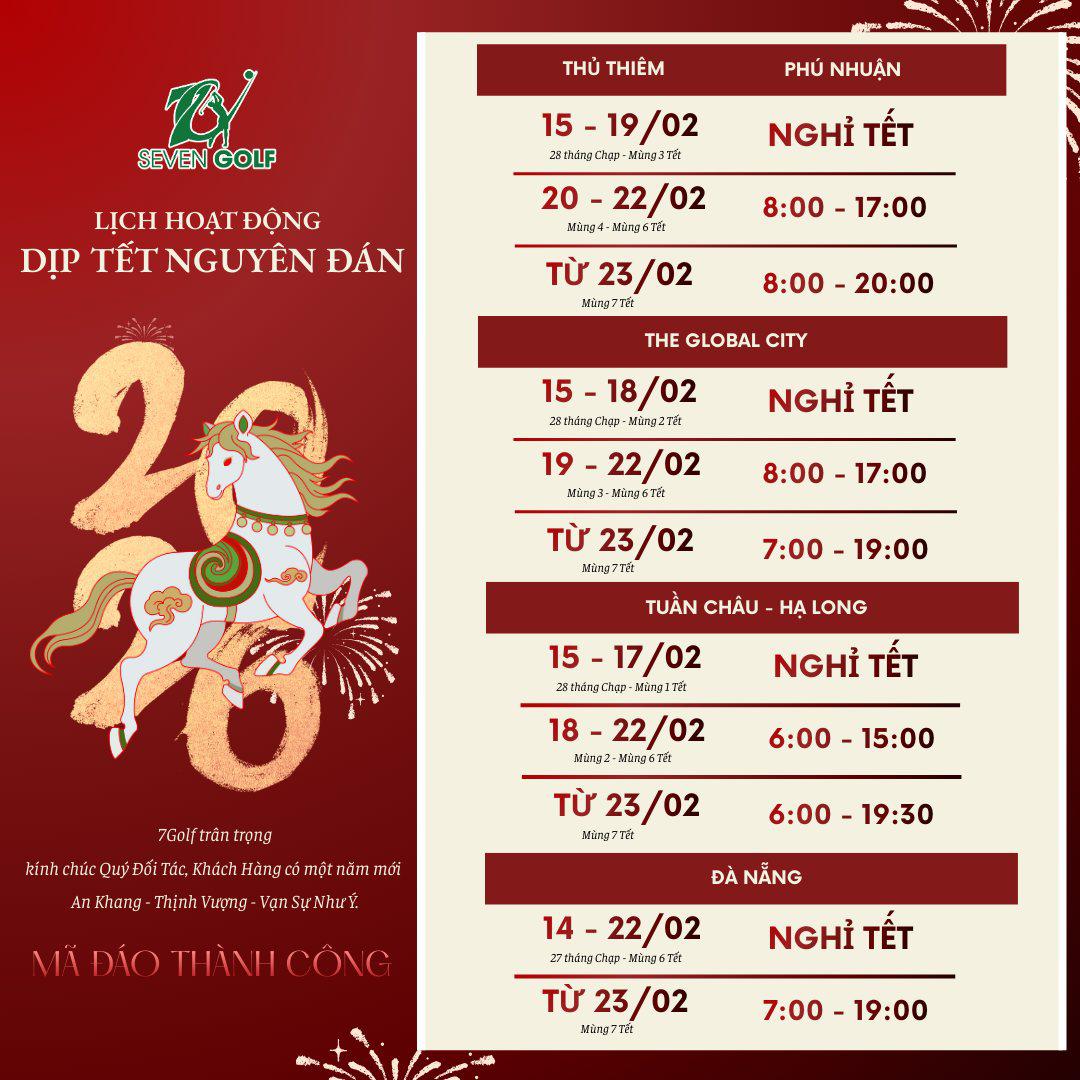 7Golf xin trân trọng thông báo lịch hoạt động trong dịp Tết Nguyên Đán 2026 (hình ảnh đính kèm).