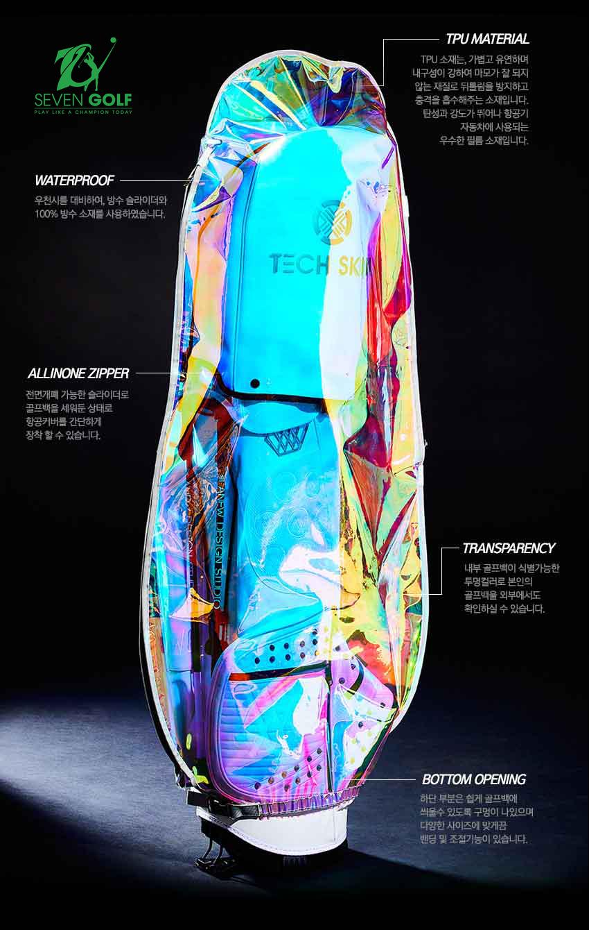 Là thương hiệu đến từ Hàn Quốc, Techskin luôn đem đến những sản phẩm chất lượng, độc đáo.Sử dụng bọc túi gậy đi mưa với thiết kế Hologram của Techskin sẽ giúp golfer trở nên hoàn toàn nổi bật.
